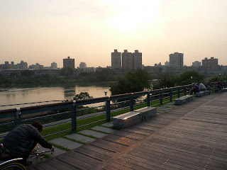 Okay. So! In the past week or so we have had a lot of really beautiful weather. (Some rain too, of course, but what can you do.) So last last Friday, Emily, Becca, Wendy, and I went for a bike ride along the river near Gongguan. It was beautiful, the weather was spectacular and it was about as pleasant as a day can get. Plus, Alice had told Emily and me that renting a bike cost about $100NT, which I thought was a decent price. We get there and it turns out that for the cheapest bike it's only $30NT for two hours - and, it's student day (or something) so we get a half off discount! The whole lovely experience cost just $1US and we got an upgrade from the cheapest bikes. I took about 100 photos, mostly while riding (so dangerous). A few: